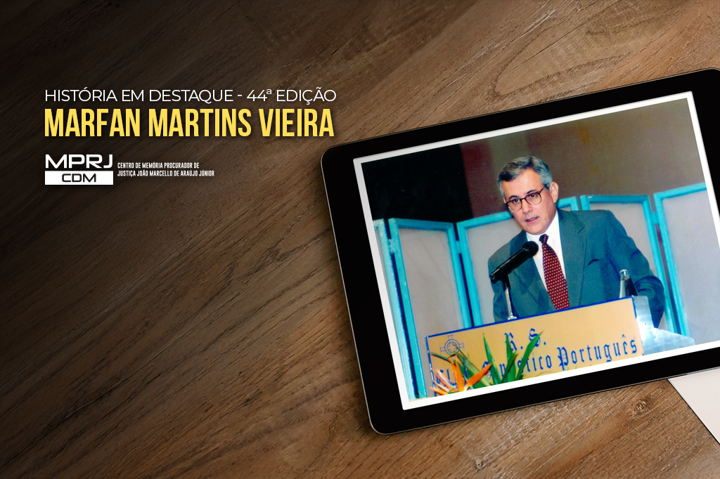 Em complemento à 44ª edição do projeto História em Destaque: Dr. Marfan Martins Vieira – Uma Trajetória de Liderança, nesta 45ª edição o Centro de Memória Procurador de Justiça João Marcello de Araújo Júnior (CDM/MPRJ) apresentará alguns dos feitos de sua gestão como procurador-geral de Justiça e aspectos de sua atuação como presidente do Conselho Nacional de Procuradores-Gerais (CNPG).