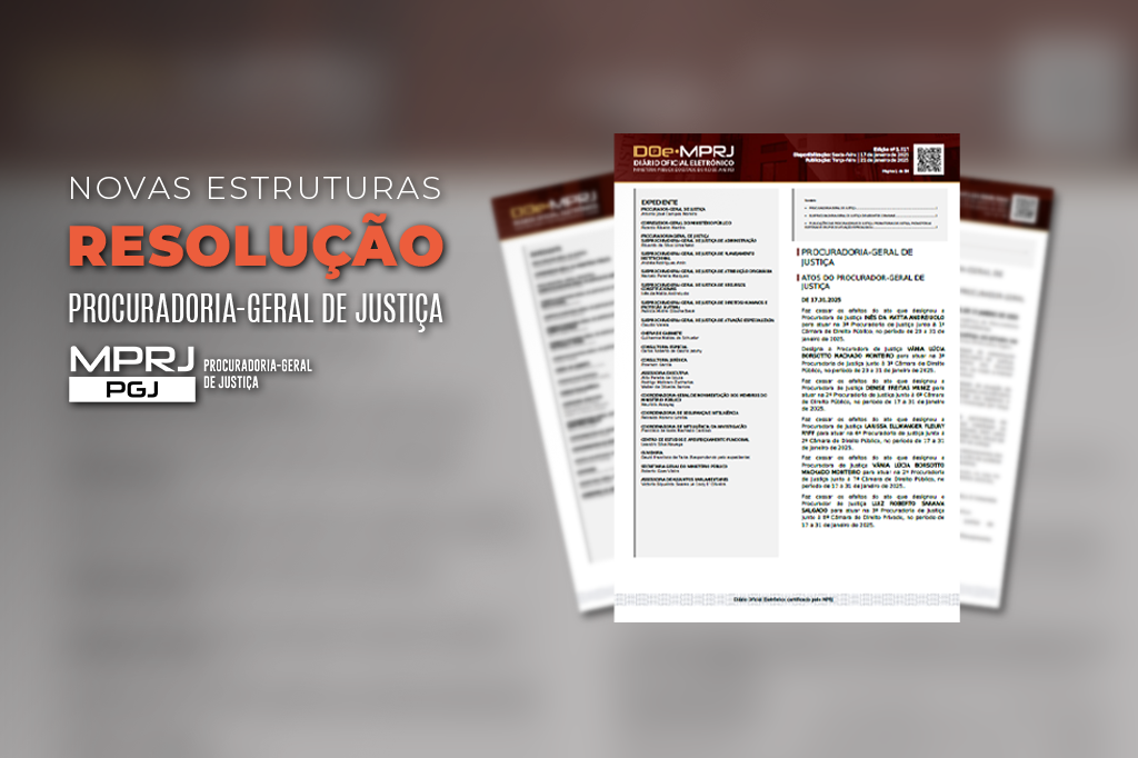 O Ministério Público do Estado do Rio de Janeiro (MPRJ) publicou, em edição extra do Diário Oficial, na sexta-feira (17/01), Resolução que dispõe sobre a nova estrutura orgânica da instituição (GPGJ Nº 2.660). Assinada pelo PGJ, Antonio José Campos Moreira, a publicação reestrutura o MPRJ para atingir as novas metas traçadas de modo a melhor atender aos interesses da sociedade fluminense.