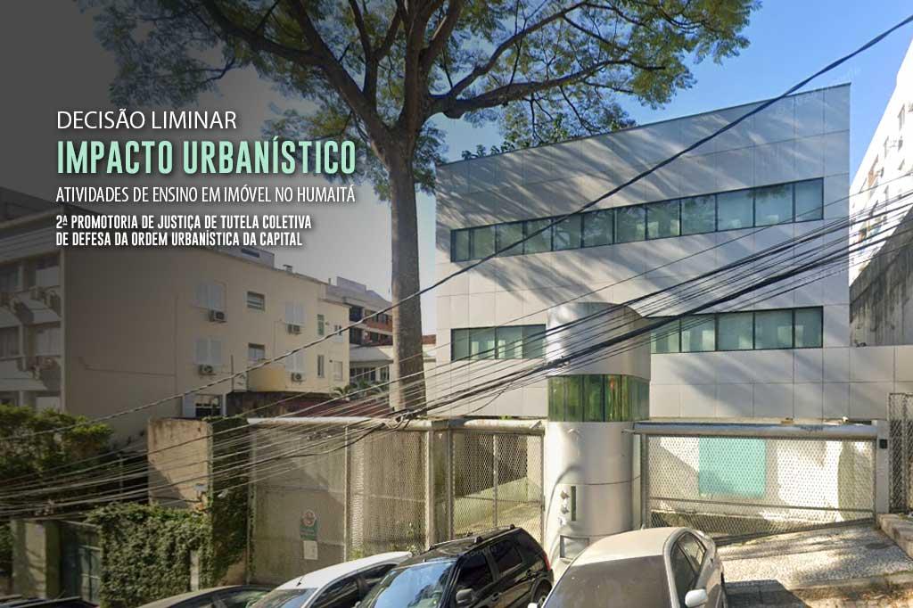 O Ministério Público do Estado do Rio de Janeiro (MPRJ), por meio da 2ª Promotoria de Justiça de Tutela Coletiva de Defesa da Ordem Urbanística da Capital, obteve, em 17/01, decisão liminar na Justiça determinando que o colégio Alfa CEM não realize qualquer atividade de ensino em imóvel localizado na Rua Macedo Sobrinho, no Humaitá, Zona Sul do Rio. A decisão também determina que não sejam feitas matrículas de novos estudantes para a unidade.