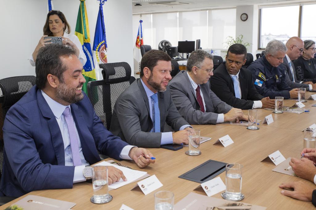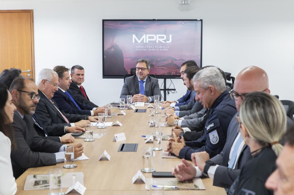 Pelo MPRJ participaram da reunião o subprocurador-geral de Justiça de Atuação Especializada, Claudio Varela; o consultor especial, Carlos Roberto Jatahy; o coordenador do Grupo de Atuação Especializada em Segurança Pública (GAESP/MPRJ) e subcoordenador do Grupo de Atuação Especial de Combate ao Crime Organizado (GAECO/MPRJ), Fabio Corrêa; o subprocurador-geral de Justiça de Administração, Eduardo Lima Neto; o secretário-Geral de Relações Institucionais e Defesa de Prerrogativas, Marfan Martins Vieira; o chefe de Gabinete, Guilherme Schueler; a assessora da Chefia de Gabinete, Carina Senna; a Coordenadora do Centro de Apoio Operacional das Promotorias de Justiça de Execução Penal, Andrezza Duarte Cançado; o assistente da Assessoria de Atribuição Originária Criminal e assistente do GAESP/MPRJ, Décio Luiz Alonso Gomes; e o coordenador de Segurança e Inteligência (CSI/MPRJ), Reinaldo Lomba.