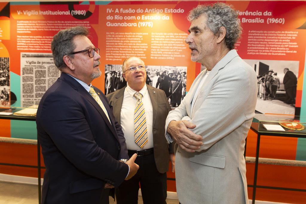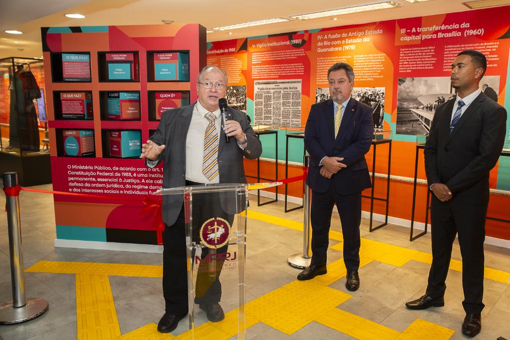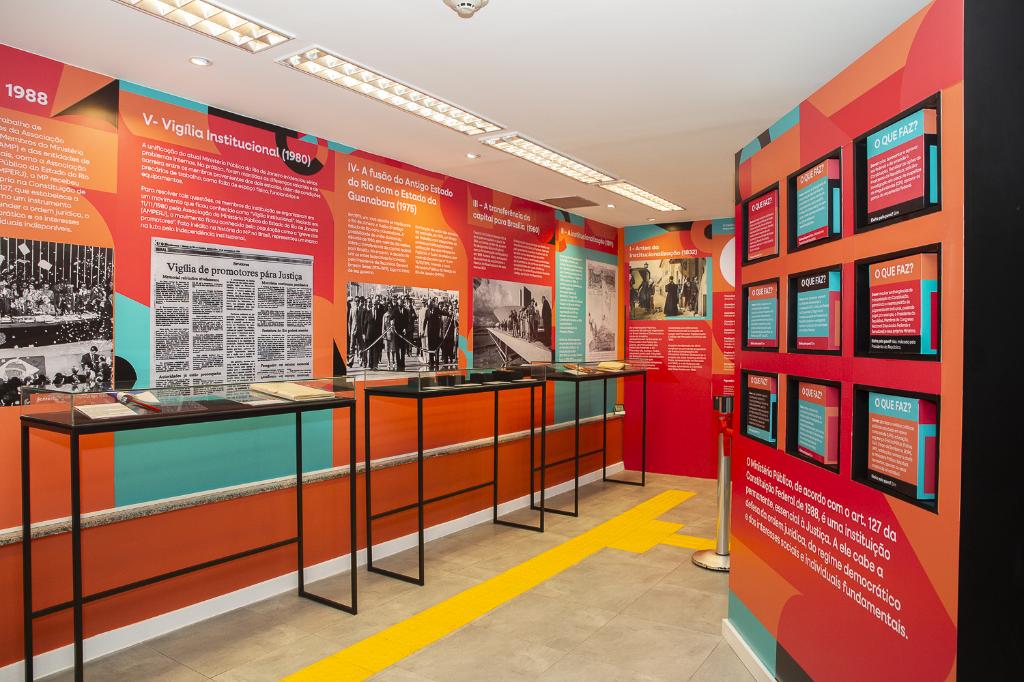 Já “O MP e o Novo Estado: os 50 anos da fusão” explora o período da fusão entre o Estado da Guanabara e o antigo Estado do Rio de Janeiro. A exposição destaca os membros que lideraram esse processo, superaram os desafios da integração e contribuíram para a consolidação do atual MPRJ.
