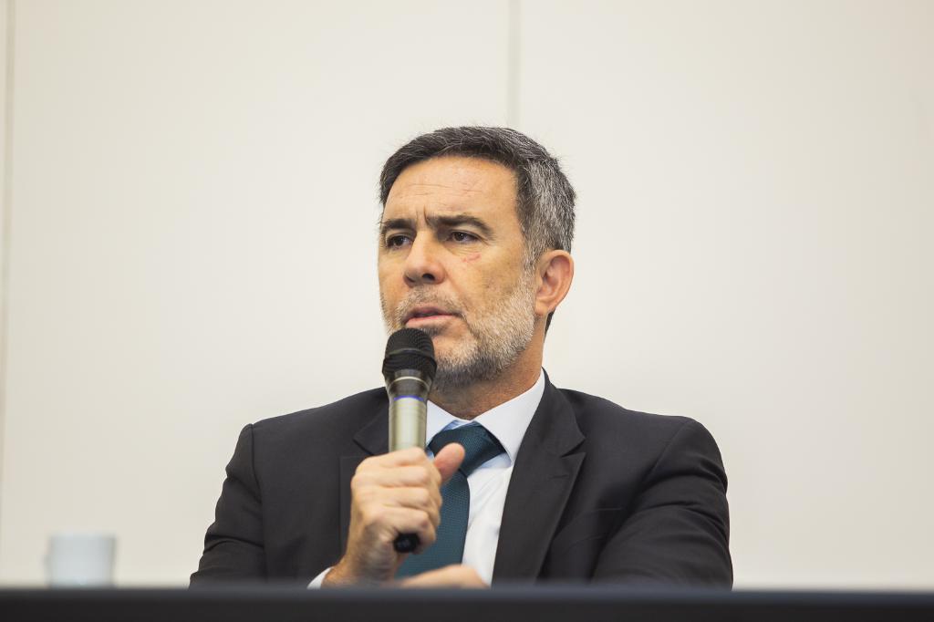 Pela manhã, o perito criminal Fabio Henrique Guimarães, da Coordenadoria de Recursos Especiais (CORE) da Polícia Civil, realizou uma palestra sobre a utilização de drones em áreas conflagradas e sistemas inteligentes.