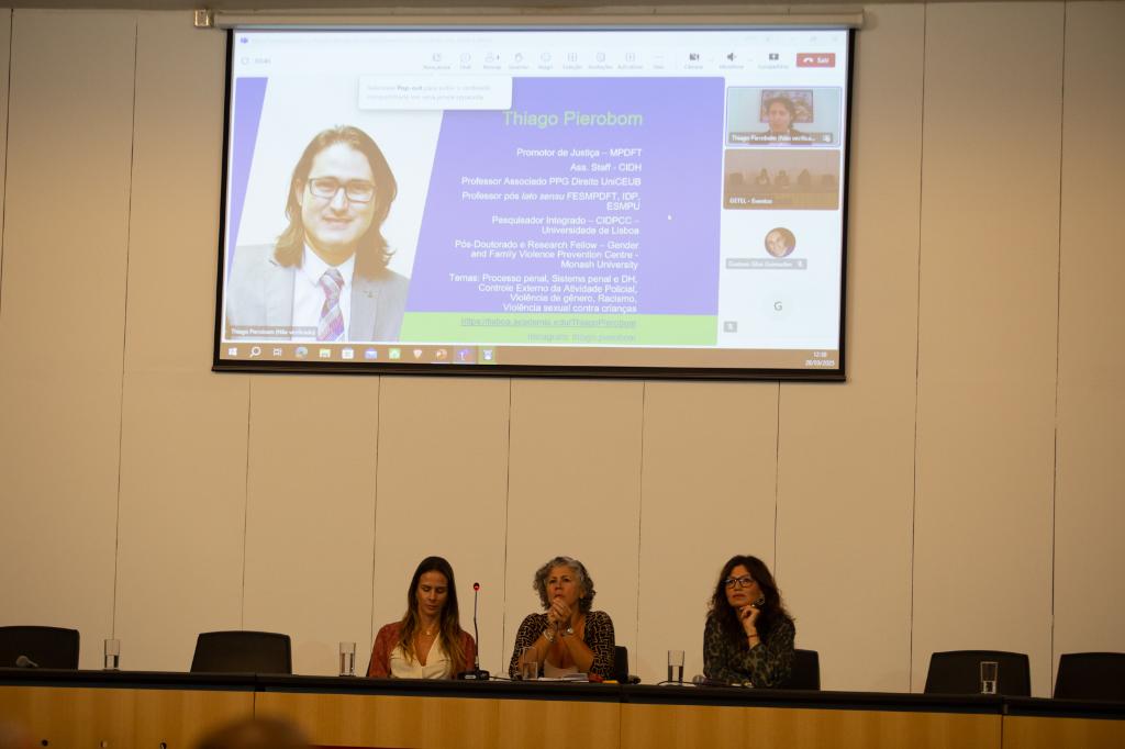 Em seguida, o promotor de Justiça Thiago Pierobom, do Ministério Público do Distrito Federal e Territórios (MPDFT), palestrou, de forma online, sobre o Sistema Interamericano de Proteção dos Direitos Humanos (SIDH) e o direito das mulheres.