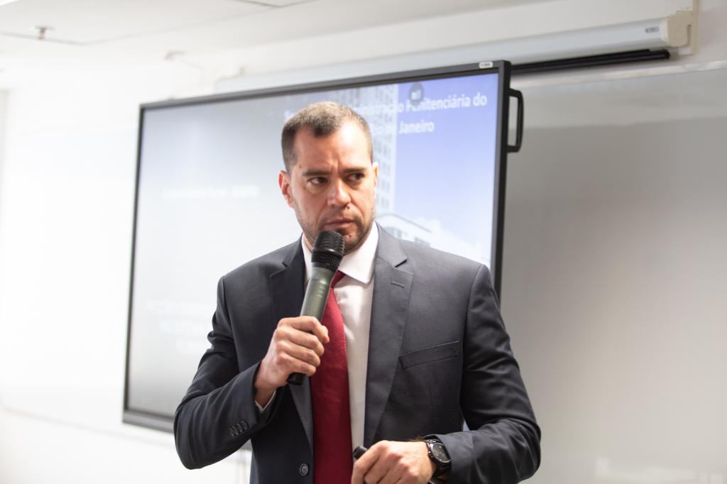 Na primeira palestra do dia, o subsecretário da Secretaria de Estado de Administração Penitenciária (SEAP), Leonardo Franceschini, falou sobre a atuação de grupos organizados no sistema prisional. Em sua apresentação, ele também destacou a experiência da secretaria no combate a ilícitos cometidos pelos detentos, e traçou um perfil atual das facções criminosas que atuam no estado e suas características.