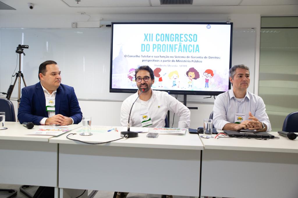 Na parte da tarde, o promotor de Justiça do Ministério Público do Estado de Goiás (MPGO), Pedro de Mello Florentino, mediou a mesa de debates “Conselho Tutelar e sua função no sistema de garantias de direitos: perspectivas a partir da atuação do MP”, que contou com as palestras do promotor de Justiça do Ministério Público do Estado de Tocantins (MPTO), Sidney Fiore Junior, e do professor da Universidade Federal Rural de Pernambuco (UFRPE), Humberto da Silva Miranda.
