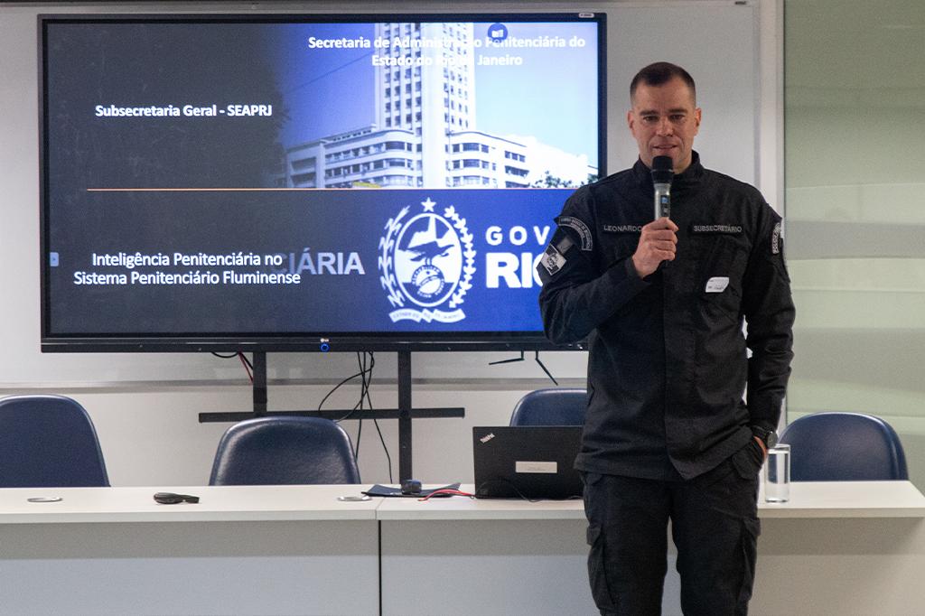 Em seguida, Leonardo Franceschin, subsecretário-Geral da Secretaria de Estado de Administração Penitenciária (SEAP), palestrou sobre o trabalho realizado para prevenir e detectar ameaças à segurança dentro dos estabelecimentos prisionais. Fechando o curso, o delegado Guilhermo Catramby, chefe do Setor de Inteligência da Polícia Federal no Rio de Janeiro, falou sobre o funcionamento do setor de inteligência na PF.