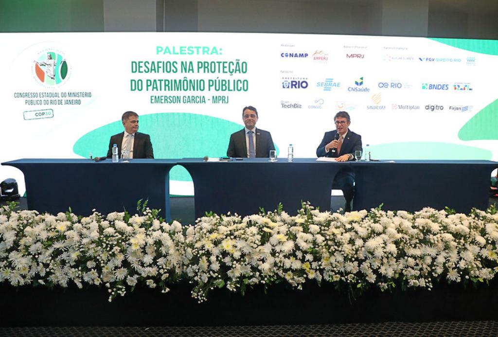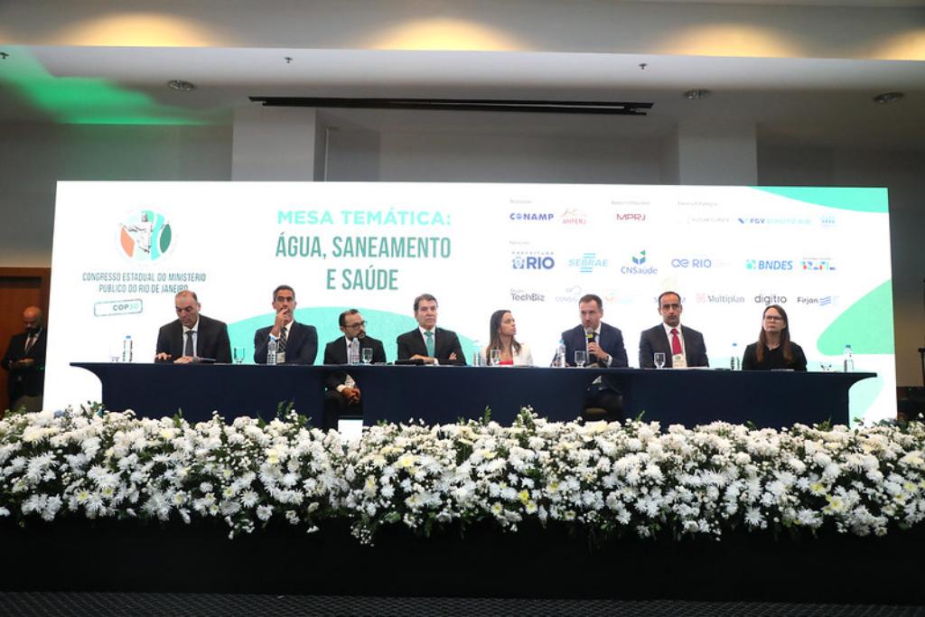 O segundo painel, com palestra do promotor de Justiça Emerson Garcia, consultor jurídico do MPRJ, teve como tema “Desafios na Proteção do Patrimônio Público”. A apresentação abordou três pontos principais: aspectos financeiros, características e obstáculos do processo estrutural e improbidade administrativa com lesão ao patrimônio público. O promotor trouxe exemplos práticos de desafios enfrentados no dia a dia e as medidas adotadas para solucioná-los. Encerrando o turno da manhã, uma mesa temática sobre “Água, Saneamento e Saúde” reuniu os promotores de Justiça José Alexandre Maximino, coordenador do Grupo de Atuação Especializada em Meio Ambiente (GAEMA/MPRJ), e Murilo Bustamante, subcoordenador da Coordenadoria de Inteligência da Investigação (CI2/MPRJ); o procurador de Justiça do Ministério Público de Minas Gerais (MPMG), Jarbas Soares Júnior; a presidente da Associação Mineira do Ministério Público (AMMP), Larissa Rodrigues Amaral; o diretor jurídico do BNDES, Walter Baère de Araújo Filho; Luana Pretto, presidente executiva do Instituto Trata Brasil; o presidente da Águas do Rio, Anselmo Seto Leal; e o diretor jurídico da AEGEA Saneamento, Fabiano Dallazen.