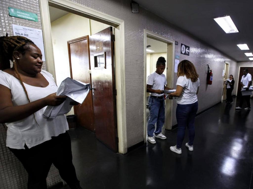 Mais de dez mil candidatos participaram, neste domingo (18/05), da prova do concurso público para ingresso no Quadro Permanente de Serviços Auxiliares do Ministério Público do Estado do Rio de Janeiro (MPRJ), destinado aos cargos de analista nas áreas Processual, Administrativa e Administrativa com especialização em Tecnologia da Informação. O exame foi aplicado em 19 locais, distribuídos por 11 cidades fluminenses, sendo sete deles na capital. Ao todo, 10.708 candidatos compareceram, de um total de 17.483 inscritos — uma taxa de presença de 61,25%. O gabarito será divulgado na próxima terça-feira (20/05).