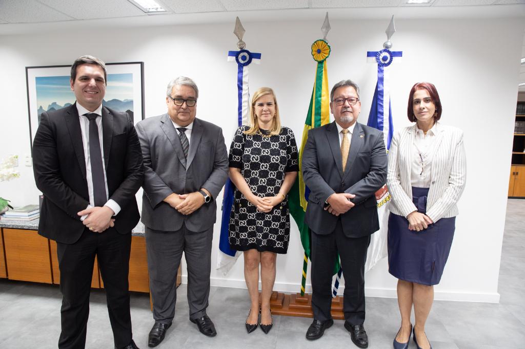 O procurador-geral de Justiça, Antonio José Campos Moreira, recebeu em seu gabinete, nesta terça-feira (20/05), a visita da presidente da Ordem dos Advogados do Brasil seccional Rio de Janeiro (OAB/RJ), Ana Tereza Basílio, acompanhada do corregedor-geral da entidade, Paulo Victor Lima Carlos. O objetivo do encontro foi estreitar o relacionamento institucional e discutir possíveis ações conjuntas. Participaram também a assessora da chefia de gabinete do MPRJ, Carina Senna, e os conselheiros da Ordem Luciano Tolla e Carolina Miraglia.