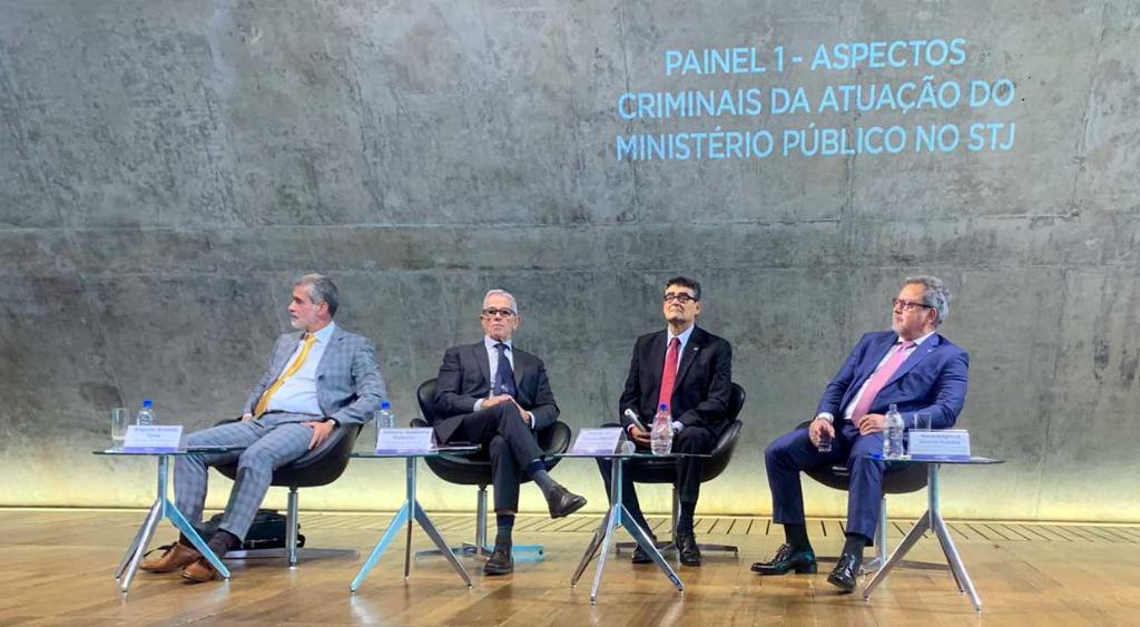 Moderada pelo PGJ, a primeira mesa do evento reuniu Antonio Saldanha Palheiro, Rogerio Schietti Cruz e a 2ª vice-presidente do TJRJ, Maria Angélica Guerra Guedes, para debaterem aspectos criminais da atuação do MP no STJ, abordando temas como a evolução da jurisprudência, as reformas ocorridas no Código de Processo Penal ao longo dos anos e alguns dos recursos julgados pelo STJ, no âmbito criminal, com a participação do Ministério Público.