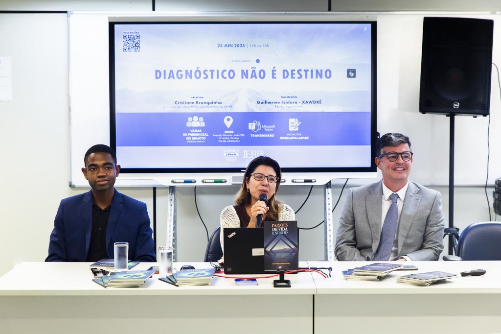 O Instituto de Educação Roberto Bernardes Barroso (IERBB/MPRJ) realizou, na segunda-feira (23/06), o evento “Diagnóstico não é destino”, com foco na inclusão e superação de barreiras atitudinais no ambiente coletivo, como o institucional. Com transmissão online e interpretação em Libras, o evento foi organizado em conjunto com a Comissão Permanente Multidisciplinar de Acessibilidade (CPMA/MPRJ).