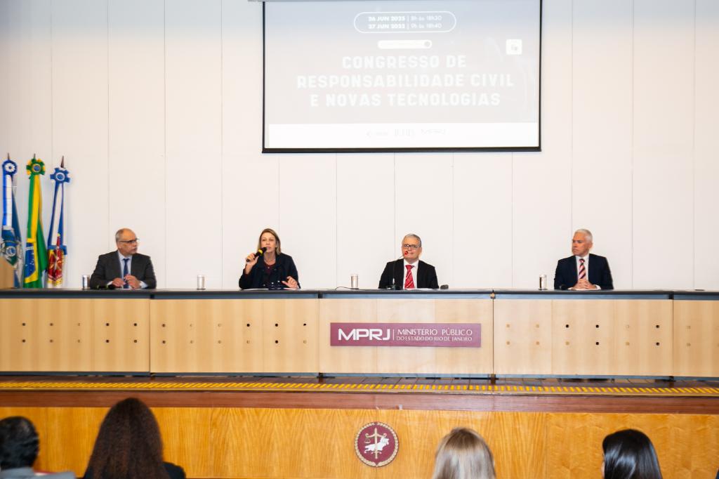 Compuseram a mesa de abertura do congresso a subprocuradora-geral de Justiça de Planejamento Institucional, Andréa Amin, que representou a Administração Superior; o encarregado pelo tratamento de dados pessoais do MPRJ e presidente do CEPDAP/MPRJ, Guilherme Magalhães Martins; o vice-diretor do IERBB/MPRJ, Alexandre Joppert; e o 2º vice-presidente do Instituto Brasileiro de Estudos e Responsabilidade Civil, Romualdo Baptista dos Santos.