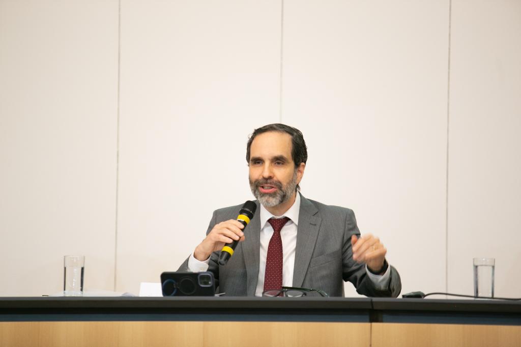 Em seguida, com mediação do professor Henrique Freire de Oliveira Sousa, o painel destacou os desafios éticos, jurídicos e técnicos no uso de IA na área da saúde. Os expositores Antonio Carlos Morato; Rafael Esteves; Andrea Cristina Zanetti e Paula Moura discutiram temas como Cuidados médicos remotos e a possibilidade de danos nas triagens automatizadas, Novos riscos gerados por neurotecnologias, Novas tecnologias na saúde suplementar e Cirurgia robótica no Brasil.