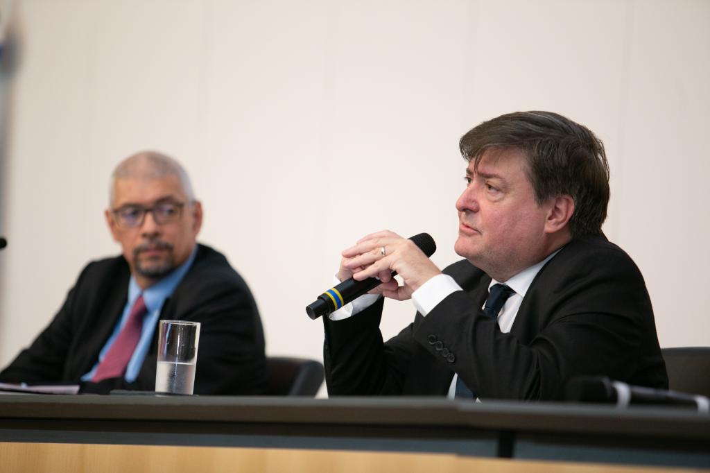A primeira palestra foi proferida pelo professor da UERJ André Farah, mestre e doutor em Direito Público. As apresentações tiveram continuidade com a participação do professor português Paulo Mota Pinto, via internet, na temática: Responsabilidade civil e inteligência artificial. O segundo palestrante a falar foi o professor Nelson Rosenvald, com o tema: As 4 dimensões da responsabilidade civil nas eras emergentes. A explanação do professor Nelson teve como objetivo esclarecer e explicar ao público os três temas: Responsibillity, Accontability e Answerabillity.
