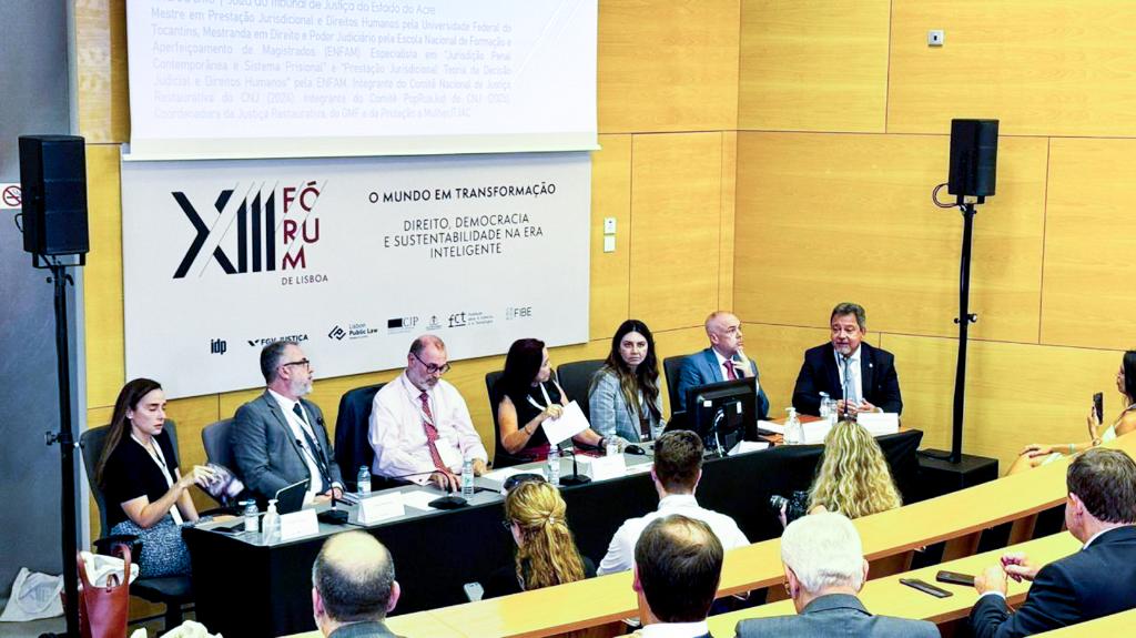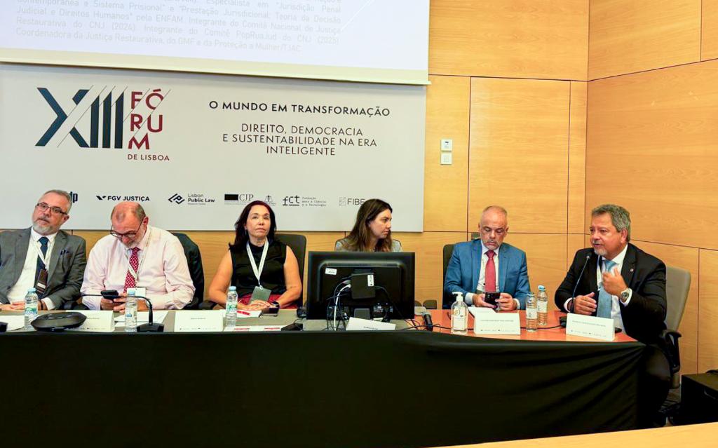 O procurador-geral de Justiça, Antonio José Campos Moreira, proferiu uma palestra sobre Justiça Restaurativa, durante o XIII Fórum de Lisboa, realizado na Universidade de Lisboa, que tem como tema “O mundo em transformação – Direito, Democracia e Sustentabilidade na Era Inteligente”, aberto nesta quarta-feira (02/07). Organizado pelo Instituto Brasileiro de Ensino, Desenvolvimento e Pesquisa, pela Fundação Getulio Vargas e pelo Lisbon Public Law Research Centre, o evento acontece até sexta-feira (04/07) e reúne ministros do Supremo Tribunal Federal (STF) e do Superior Tribunal de Justiça (STJ), além de ministros de Estado, governadores, parlamentares e representantes de autarquias e órgãos governamentais, que debatem diversos temas de relevância no meio jurídico.