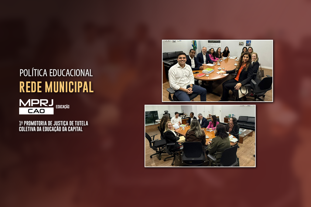 Na ocasião, também foram debatidas demandas recebidas por meio de ouvidorias, ações civis públicas e procedimentos administrativos em curso no MPRJ, que requerem resposta por parte da administração municipal. A reunião foi conduzida pela promotora de Justiça titular da 1ª Promotoria de Justiça de Tutela Coletiva da Educação da Capital, Rosana Cipriano, e contou com a presença do secretário municipal de Educação, Renan Ferreirinha; do subsecretário Hugo Nepomuceno; e de integrantes da assessoria jurídica da pasta.
