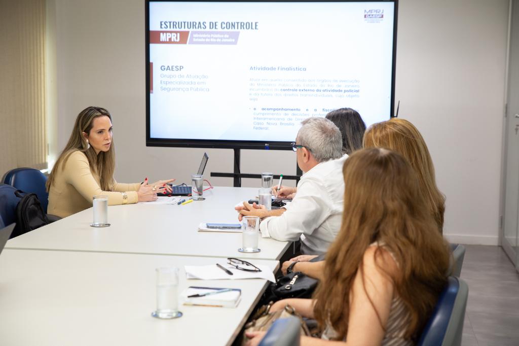 Além disso, os promotores de Justiça Renata Cossatis e Michel Zoucas, integrantes do GAESP/MPRJ, apresentaram as linhas de atuação do grupo e ouviram as demandas de saúde da PCERJ. "Neste momento, o MPRJ vem realizando o diagnóstico por etapas, com a coleta de dados e atento às peculiaridades próprias de cada força policial. O levantamento é necessário até para se compreender como a Polícia Civil pretende dar cumprimento à Resolução nº 13 da SESP/2024 que previu atendimento psicológico pós-incidentes críticos decorrentes da atividade. A partir do mapeamento da temática será possível a definição das possíveis linhas de ação para o cumprimento do acórdão da ADPF-635/RJ perante o Comitê de Monitoramento do CNMP", informou Renata Cossatis.