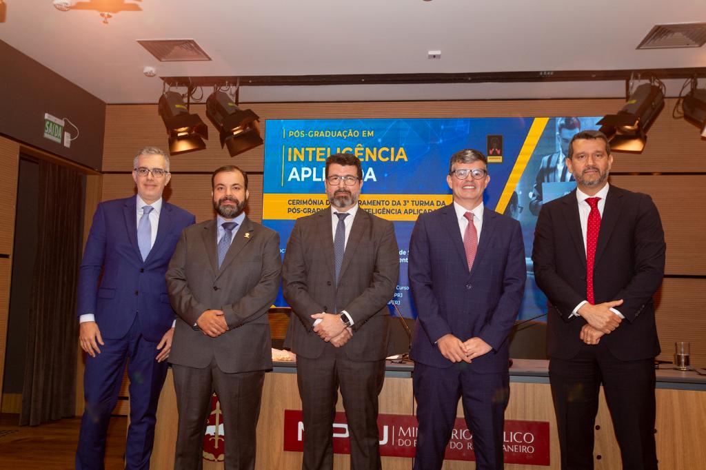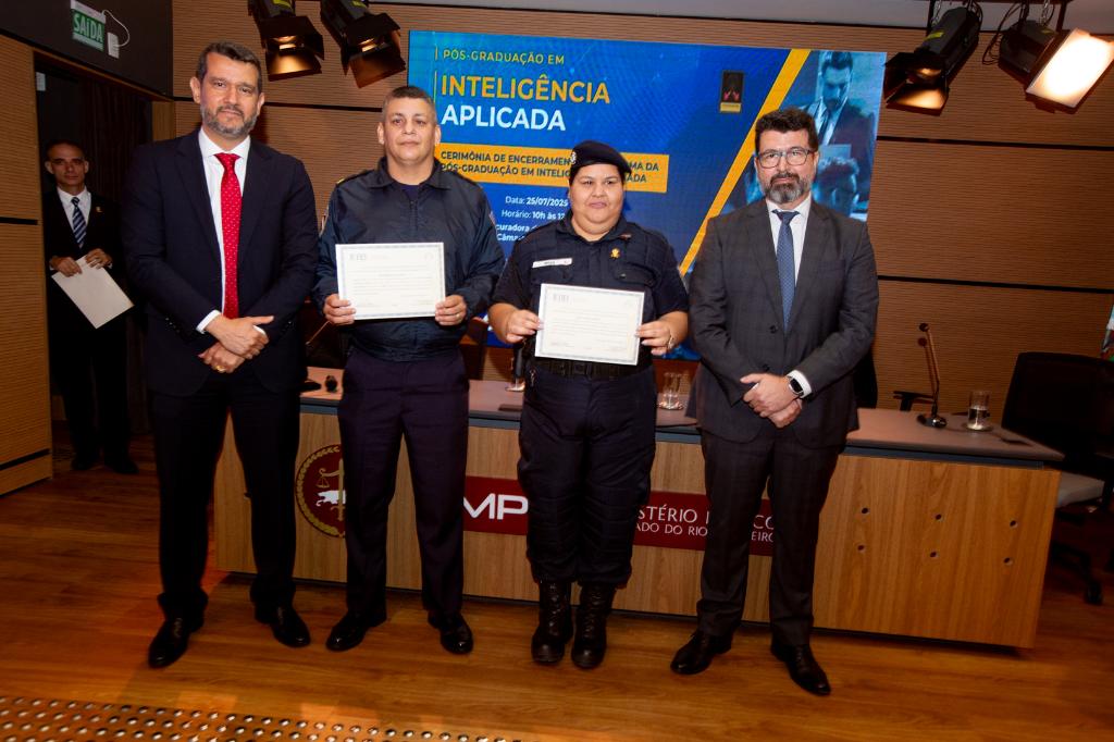 O Ministério Público do Estado do Rio de Janeiro, por meio do Instituto de Educação Roberto Bernardes Barroso (IERBB/MPRJ), realizou, nesta sexta-feira (25/07), a cerimônia de encerramento do curso de pós-graduação em Inteligência Aplicada, com a entrega de certificados e insígnias aos concluintes da terceira turma. A solenidade contou com a abertura do diretor do IERBB/MPRJ, promotor de Justiça Leandro Navega, que parabenizou os formandos pelo empenho e excelente trabalho no período.