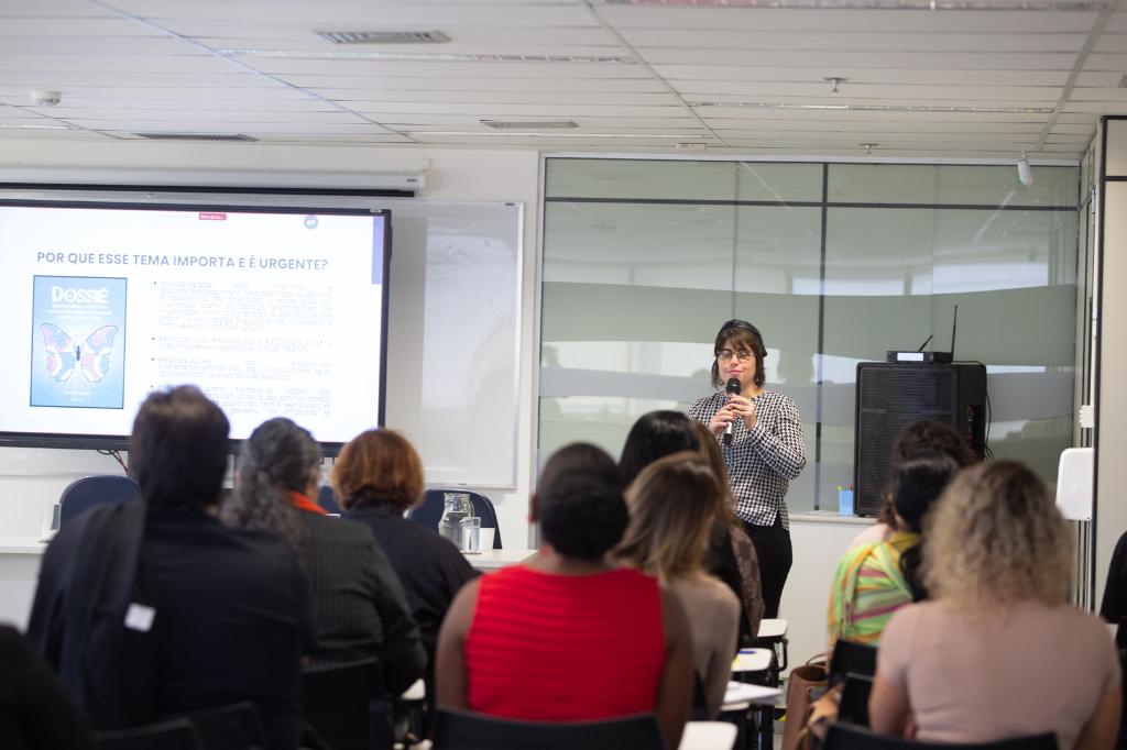 “Nosso objetivo com a aula é sensibilizar os profissionais e trazer a potência do conhecimento sobre esse tema para a formação das equipes, e para o fortalecimento das políticas públicas de atendimento à população trans”, destacou a promotora e coordenadora do curso de pós-graduação, Viviane Alves.