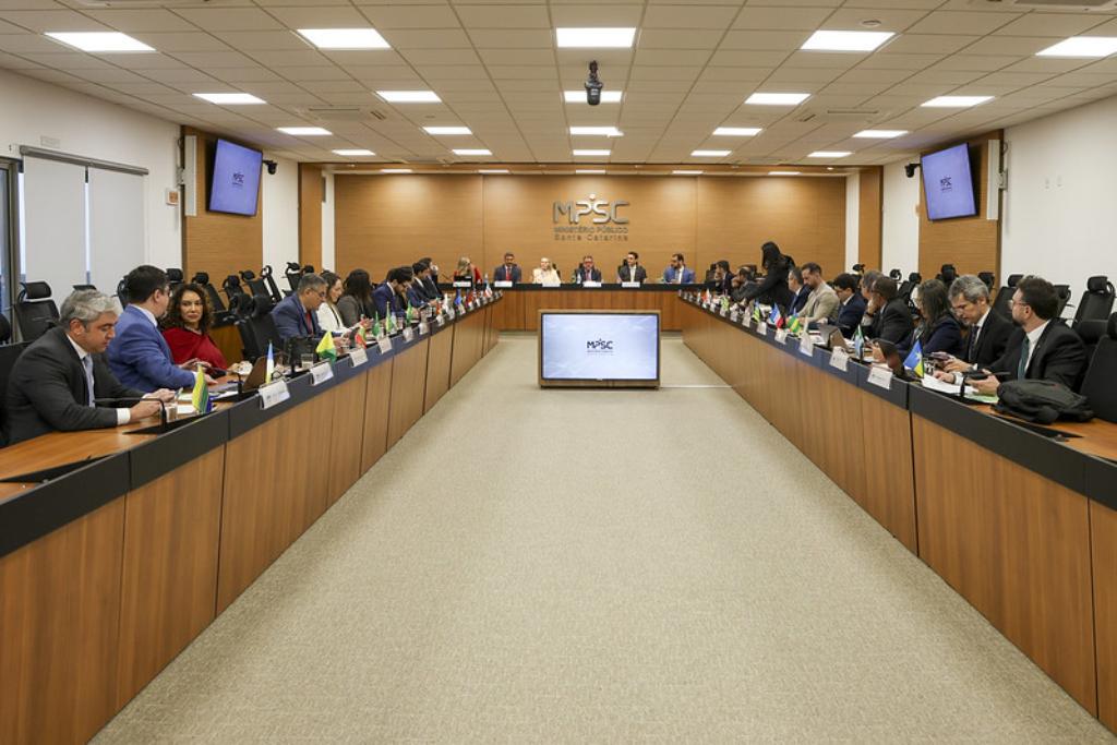 O procurador-geral de Justiça do Ministério Público do Estado do Rio de Janeiro (MPRJ), Antonio José Campos Moreira, presidiu, nesta sexta-feira (08/08), na sede do Ministério Público de Santa Catarina (MPSC), a segunda reunião ordinária do Grupo Nacional de Controle Externo da Atividade Policial do Conselho Nacional de Procuradores-Gerais (GNCEAP/CNPG). O encontro teve como objetivo fortalecer a atuação do Ministério Público nessa área, promovendo o diálogo e a troca de experiências em busca de soluções efetivas para desafios que são comuns às diferentes unidades do MP. Os trabalhos foram conduzidos por Antonio José, com apoio do secretário-executivo do grupo, o promotor de Justiça Francisco Cardoso, coordenador de Inteligência da Investigação (CI2/MPRJ). A anfitriã do evento, a procuradora-geral de Justiça do MPSC, Vanessa Cavallazzi, participou da abertura do evento.