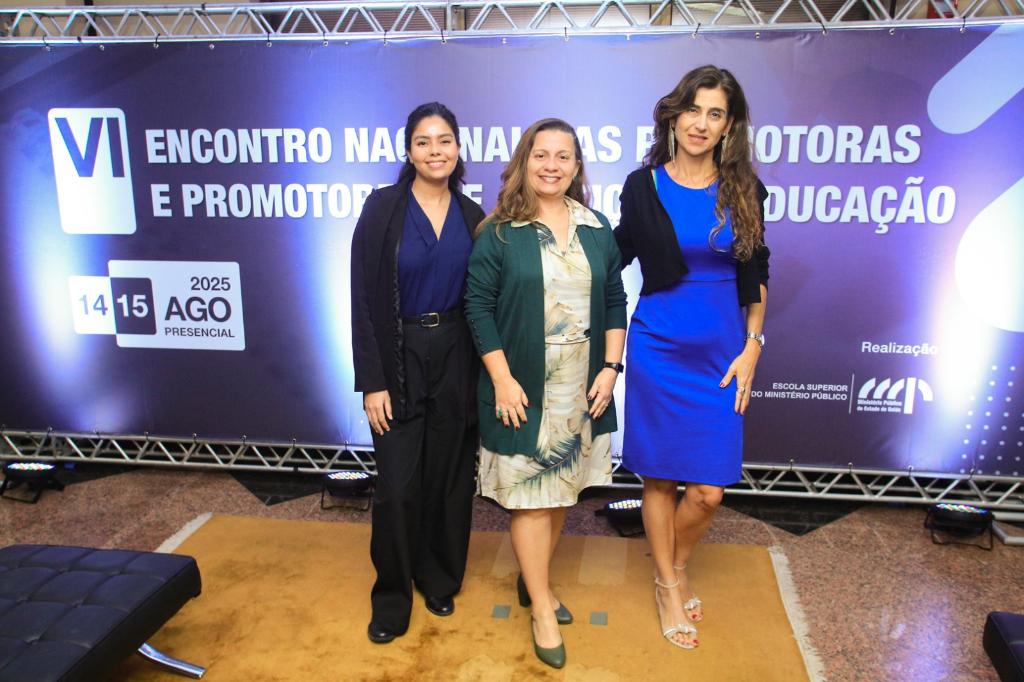 Os desafios contemporâneos da educação no Brasil estão entre os temas debatidos no VI Encontro Nacional das Promotoras e Promotores de Justiça da Educação, realizado no Ministério Público do Estado de Goiás (MPGO), nos dias 14 e 15 de agosto. Participaram do evento as promotoras de Justiça Bianca Mota e Stella Fernandes Rodrigues Baltar, respectivamente coordenadora e subcoordenadora do Centro de Apoio Operacional das Promotorias de Justiça de Tutela Coletiva de Proteção à Educação do Ministério Público do Estado do Rio de Janeiro (CAO Educação/MPRJ), e Rosana Cipriano, titular da 1ª Promotoria de Justiça de Tutela Coletiva de Proteção à Educação da Capital.