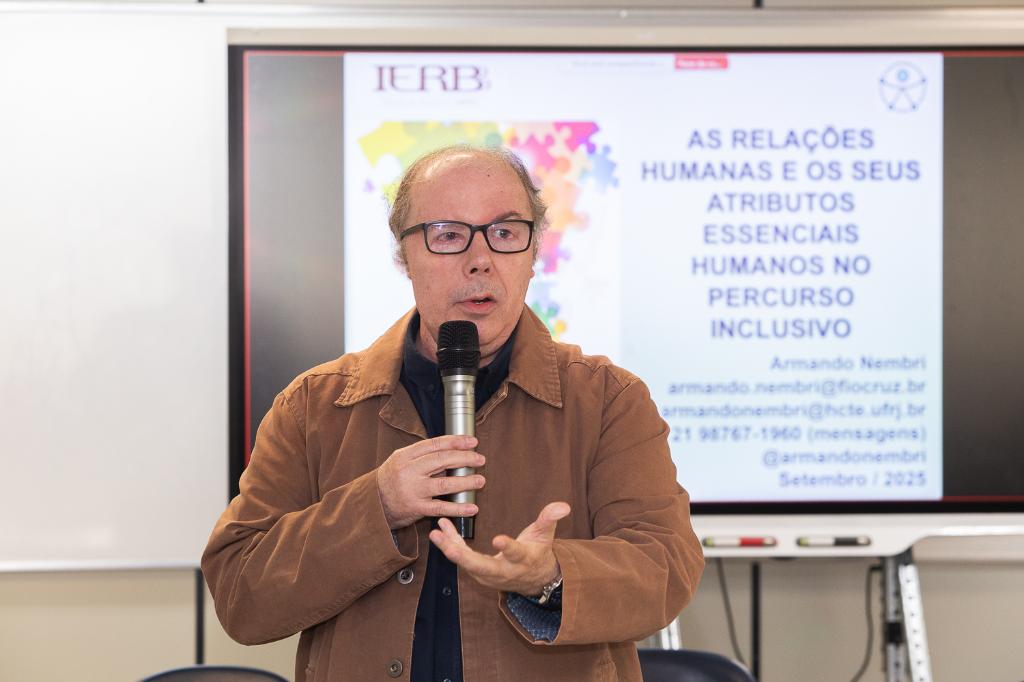 O Ministério Público do Estado do Rio de Janeiro, por meio do Instituto de Educação Roberto Bernardes Barroso (IERBB/MPRJ), realizou, nesta segunda-feira (15/09), a palestra “As relações humanas e os seus atributos essenciais no percurso inclusivo”, com o professor e coordenador da Especialização de Direitos Humanos, Inclusão e Acessibilidade (ENSP/FIOCRUZ), Armando Guimarães Nembri. O encontro ocorreu no IERBB/MPRJ e teve transmissão ao vivo pelo Microsoft Teams, com vagas presenciais e remotas para público interno e externo.