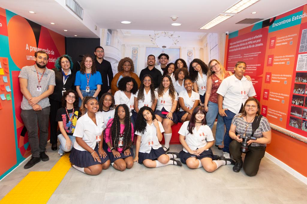 O Ministério Público do Estado do Rio de Janeiro recebeu, nesta quarta-feira (18/09), um grupo de estudantes do ensino médio do curso de Professores do Instituto de Educação Carlos Pasquale, de Nilópolis, para uma visita guiada ao Centro de Memória Procurador de Justiça João Marcello de Araújo Júnior (CDM/MPRJ). Os alunos conheceram as exposições Congressos e Encontros: em Construção da Cidadania e O MP e o Novo Estado: os 50 anos da fusão. A atividade, que une história e cidadania, buscou aproximar os jovens do papel do MP e mostrar de que forma a instituição pode ser acionada na defesa de direitos individuais e coletivos.