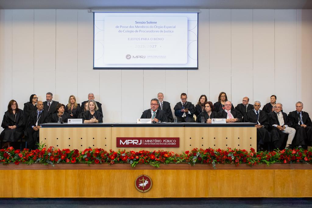 O Ministério Público do Estado do Rio de Janeiro (MPRJ) realizou, nesta quarta-feira (24/09), a cerimônia de posse de nove procuradores de Justiça eleitos para integrarem o Órgão Especial do Colégio de Procuradores de Justiça, para o período de 25 de setembro de 2025 a 24 de setembro de 2027. Além deles, também tomaram posse, como suplentes, cinco procuradores de Justiça. A cerimônia ocorreu no auditório do edifício-sede da instituição.