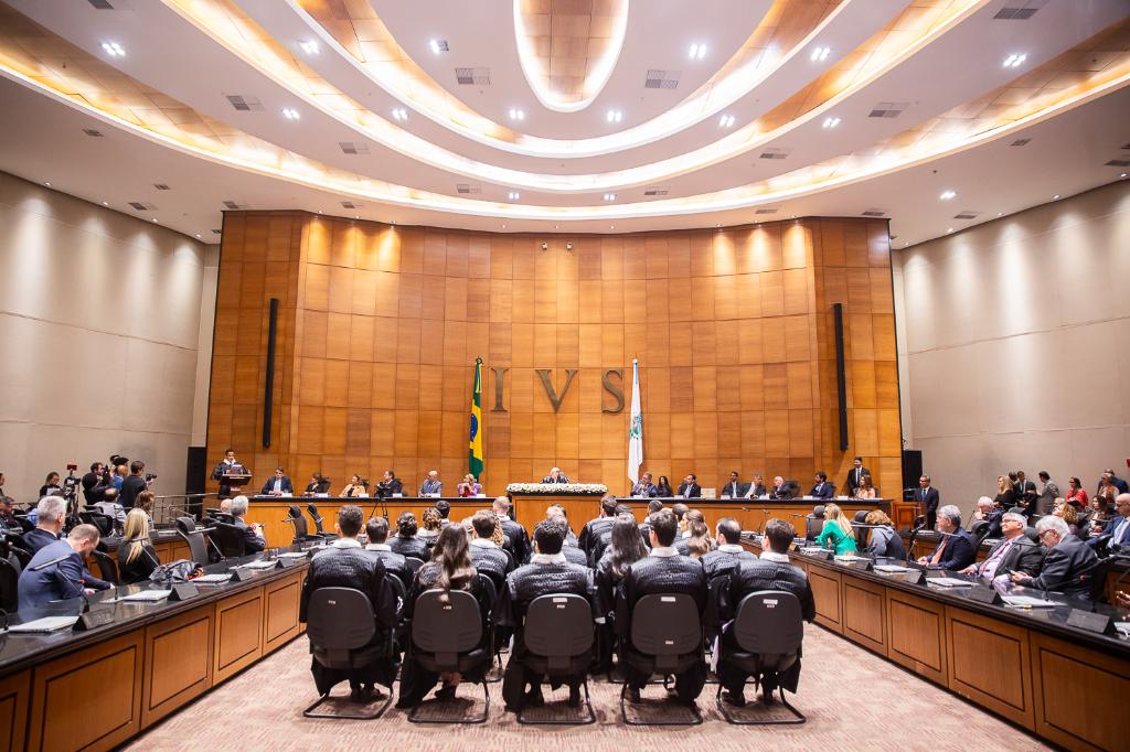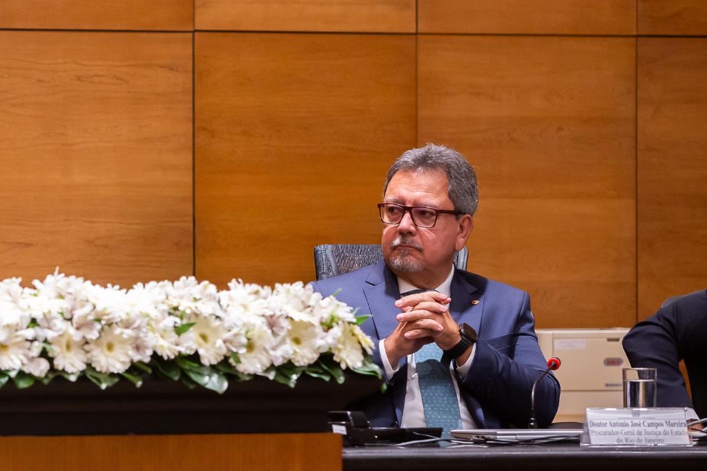 O procurador-geral de Justiça, Antonio José Campos Moreira, prestigiou, nesta quarta-feira (01/10), a posse de 30 novos juízes substitutos do Tribunal de Justiça do Estado do Rio de Janeiro (TJ-RJ), aprovados no 50º concurso para ingresso na magistratura de carreira. A cerimônia, conduzida pelo presidente do TJ-RJ, desembargador Ricardo Couto de Castro, ocorreu no plenário Ministro Waldemar Zveiter, na sede do Tribunal de Justiça. O PGJ compôs a mesa de abertura.