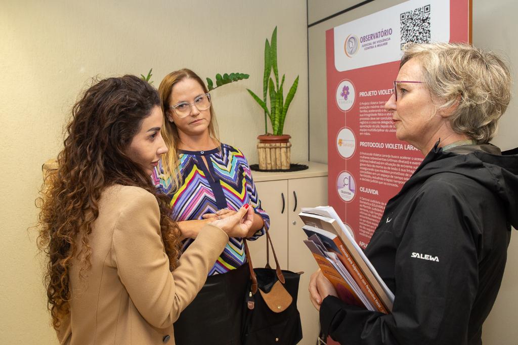 Para conhecer a estrutura de apoio às vítimas de violência doméstica e a forma como o Judiciário atua, as promotoras de Justiça Carina Senna, assessora internacional do Ministério Público do Estado do Rio de Janeiro (MPRJ), e Eyleen Marenco, subcoordenadora do CAO Violência Doméstica (CAO VD/MPRJ), juntamente com a juíza italiana Paola di Nicola Travaglini, magistrada da Corte di Cassazione e consultora jurídica da Comissão de Feminicídio do Senado Italiano, estiveram, nesta quinta-feira (02/10), no Tribunal de Justiça do Rio de Janeiro (TJRJ), no Centro.