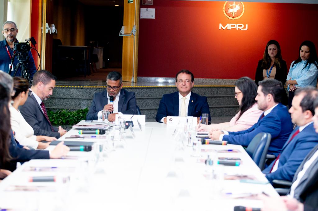 O Ministério Público do Estado do Rio de Janeiro (MPRJ) sediou, na terça-feira (07/10), encontro com representantes dos Ministérios Públicos e dos Poderes Executivos dos sete estados que integram o Consórcio de Integração Sul e Sudeste (COSUD). Durante a reunião foi discutido o plano de trabalho do Consórcio, em dois eixos: combate ao crime organizado e atuação conjunta em eventos climáticos extremos. O COSUD tem por objetivo estabelecer estratégias de atuação por meio de ações coordenadas entre seus integrantes.