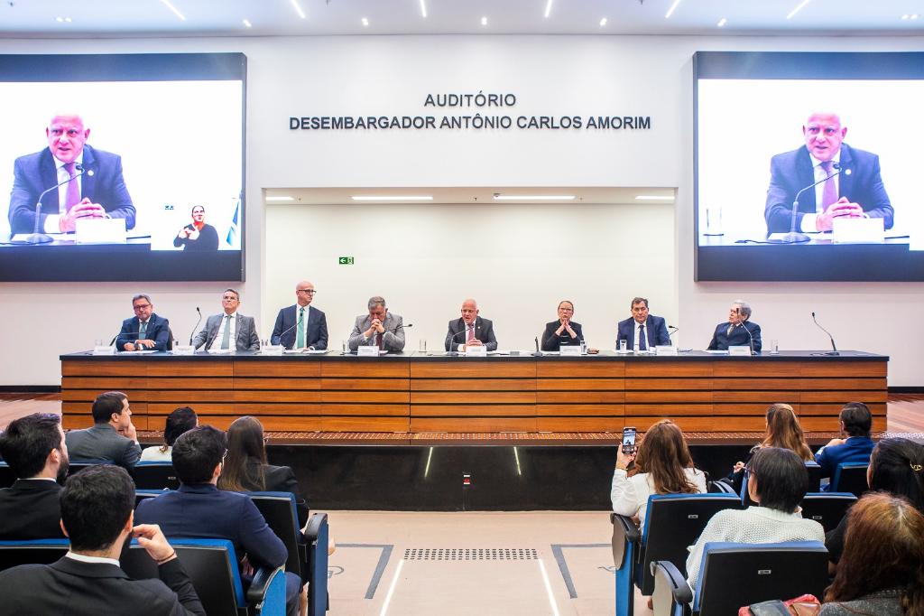 O procurador-geral de Justiça, Antonio José Campos Moreira, participou nesta segunda-feira (20/10), da abertura do evento “Organizações criminosas e eleições”, que reuniu integrantes do sistema de Justiça para debater a influência exercida pelo crime organizado no processo eleitoral. O encontro foi realizado no auditório Desembargador Antônio Carlos Amorim, na sede do Tribunal de Justiça do Rio de Janeiro (TJ-RJ), e contou com palestras de especialistas,
