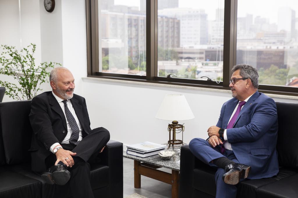 O procurador-geral de Justiça do Estado do Rio de Janeiro, Antonio José Campos Moreira, recebeu o cônsul-geral da Itália no Rio de Janeiro, Massimiliano Iacchini, nesta terça-feira (21/10), na sede da instituição. O encontro teve como objetivo ampliar a cooperação entre o Ministério Público estadual (MPRJ) e o Consulado da Itália nas áreas de combate ao crime organizado, à lavagem de dinheiro e às organizações criminosas transnacionais. Durante a reunião, foram discutidas possibilidades de intercâmbio de informações, compartilhamento de boas práticas investigativas e parcerias em ações de capacitação de membros e servidores.
