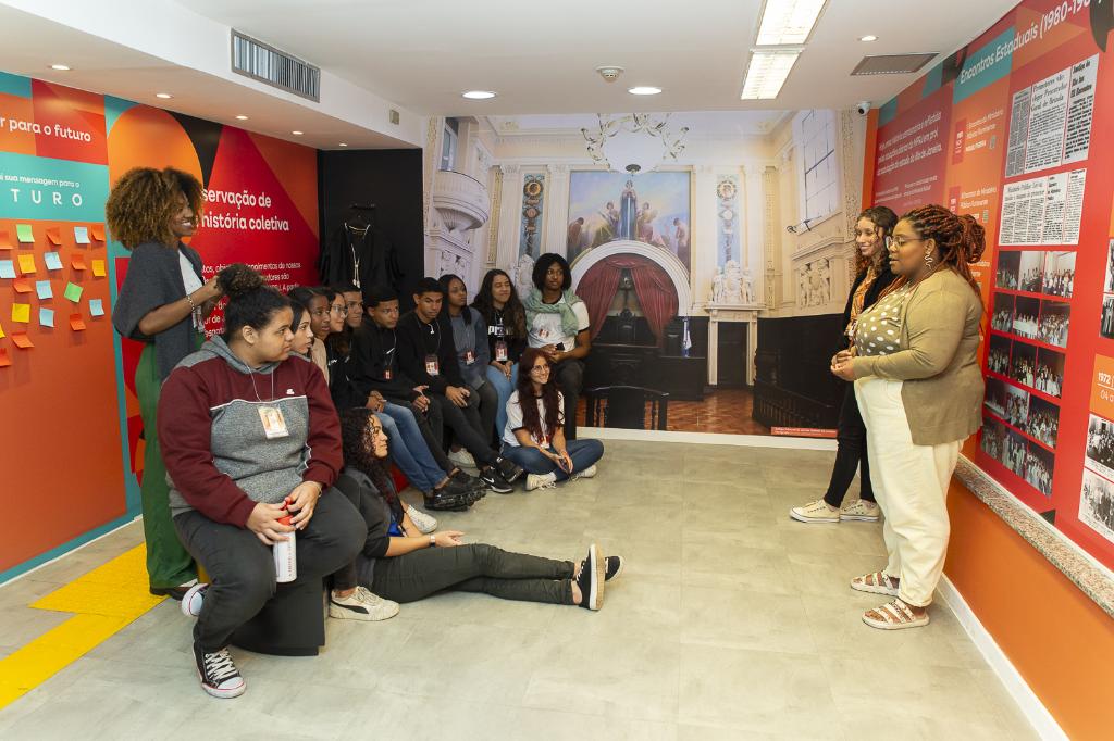 Em seguida, os alunos visitaram as exposições “Congressos e Encontros” e “50 anos da fusão”, guiados pela historiadora Nayara Santos e pela estagiária de História Anne Marrie Mesquita, que explicaram o campo de atuação do MPRJ e o trabalho de preservação e difusão do acervo histórico do CDM.