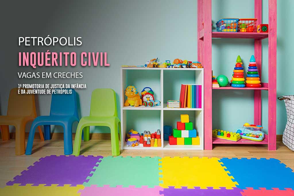 A 1ª Promotoria de Justiça da Infância e da Juventude de Petrópolis do Ministério Público do Estado do Rio de Janeiro (MPRJ) instaurou inquérito civil para apurar e acompanhar as medidas que adotadas pelo Poder Público municipal para assegurar a meta de universalização da Educação Infantil (creche). O objetivo é zerar a fila de espera de vagas e garantir o cumprimento integral do direito público à educação infantil.