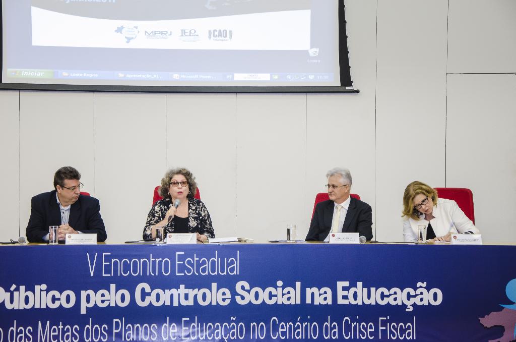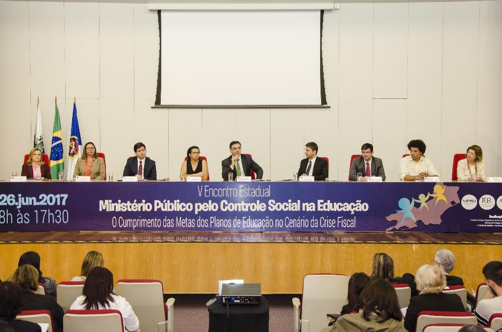 O Ministério Público do Estado do Rio de Janeiro (MPRJ), por meio do Centro de Apoio Operacional das Promotorias de Tutela Coletiva de Proteção à Educação (CAO Educação) e do Instituto de educação e Pesquisa (IEP/MPRJ) promoveu, na segunda-feira (26/06), o V Encontro Estadual “Ministério Público pelo Controle Social na Educação”, com o tema “O Cumprimento das Metas dos Planos de Educação no Cenário da Crise Fiscal”.