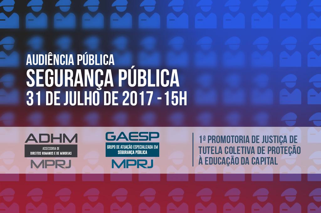 O Ministério Público do Estado do Rio de Janeiro, por meio do Grupo de Atuação Especializada em Segurança Pública (GAESP/MPRJ), da Assessoria de Direitos Humanos e de Minorias e da 1ª Promotoria de Justiça de Tutela Coletiva de Proteção à Educação da Capital realizará audiência pública, em 31/07, das 15h às 18h, no auditório do edifício-sede do MPRJ, com o tema Segurança Pública.