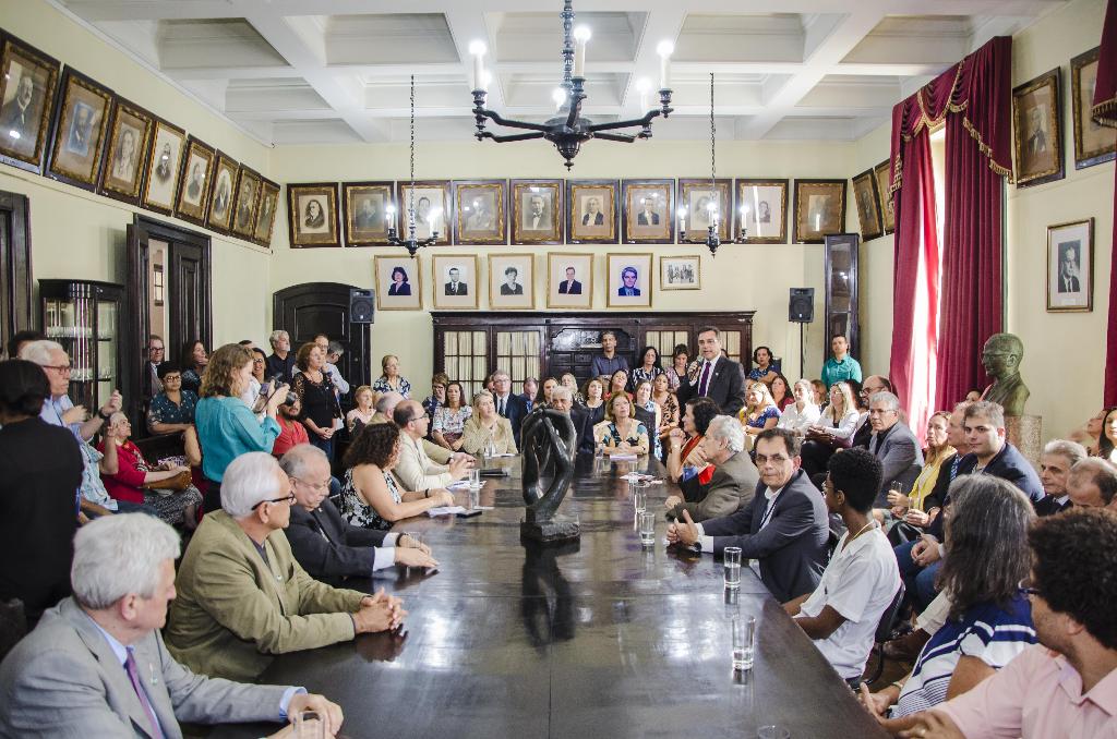 Eduardo Gussem falou sobre a importância da gestão da professora Malvina ser dirigida por fibra, garra, determinação e luta, especialmente em um momento de crise no Rio. Ele desejou boa sorte à presidente e reforçou o compromisso de parceria do Ministério Público do Estado do Rio de Janeiro (MPRJ), como instituição defensora do estado democrático de direito. “Nossa política de ação mudou nos últimos anos. Adotamos uma postura preventiva, a fim de evitar que os danos à sociedade aconteçam. Estamos investindo em conhecimento por meio de pesquisas, como os três laboratórios de pesquisa avançadas nas áreas legislativa, jurídica, orçamentárias e de políticas públicas. Sabemos a nossa missão e vamos honrar o crédito que vocês depositam em nós”, afirmou.