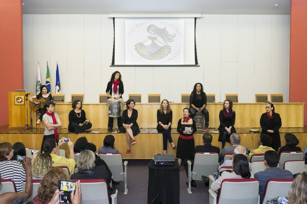 Para ilustrar artisticamente o tema do evento, o grupo “Mulheres Rodadas” realizou uma performance musical para questionar a naturalização da violência contra a mulher na música brasileira. Foram interpretados sambas e canções brasileiras cujas letras incitam a manutenção desse quadro. A plateia, cerca de 300 pessoas, aplaudiu emocionada. Após a apresentação, a jornalista Ana Paula Araújo assumiu a mediação da mesa de debates composta apenas por lideranças femininas.