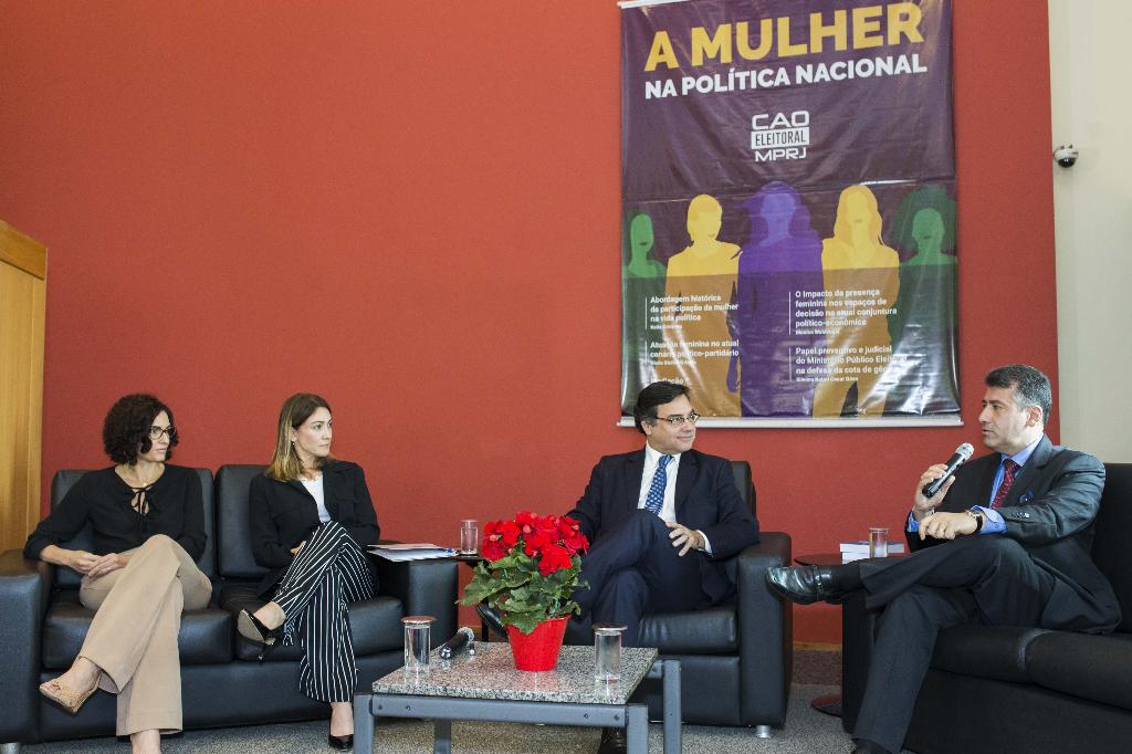 O Ministério Público do Estado do Rio de Janeiro (MPRJ), por meio do Centro de Apoio Operacional das Promotorias Eleitorais (CAO Eleitoral/MPRJ), realizou nesta sexta-feira (27/10), o painel “A Mulher na Política Nacional”, que debateu o espaço da mulher no ambiente político e as possíveis causas de sua pouca e inexpressiva inserção neste meio. Participaram como palestrantes a historiadora e professora da UFRJ, Keila Grinberg; a advogada e professora adjunta da UERJ, Vânia Aieta; a jornalista Mônica Waldvogel; e a procuradora da república Silvana Batini Cesar. O debate foi mediado pela jornalista Cristina Alves.