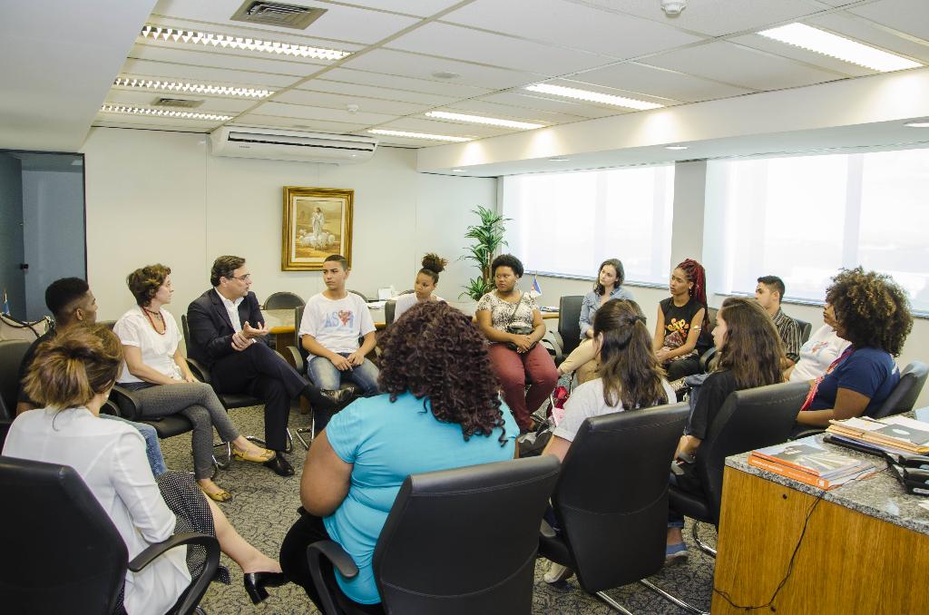 O Ministério Público do Estado do Rio de Janeiro (MPRJ), por meio da Assessoria de Direitos Humanos e Minorias (ADHM/MPRJ), em parceria com o Fundo das Nações Unidas para a Infância (Unicef) , recebeu, nesta sexta-feira (10/11), dez adolescentes para conhecerem de perto o trabalho realizado no dia a dia da instituição. Em uma conversa informal no gabinete do procurador-geral de Justiça, Eduardo Gussem, foram abordados temas que afetam a vida dos jovens e a atuação do MPRJ na defesa de seus direitos.