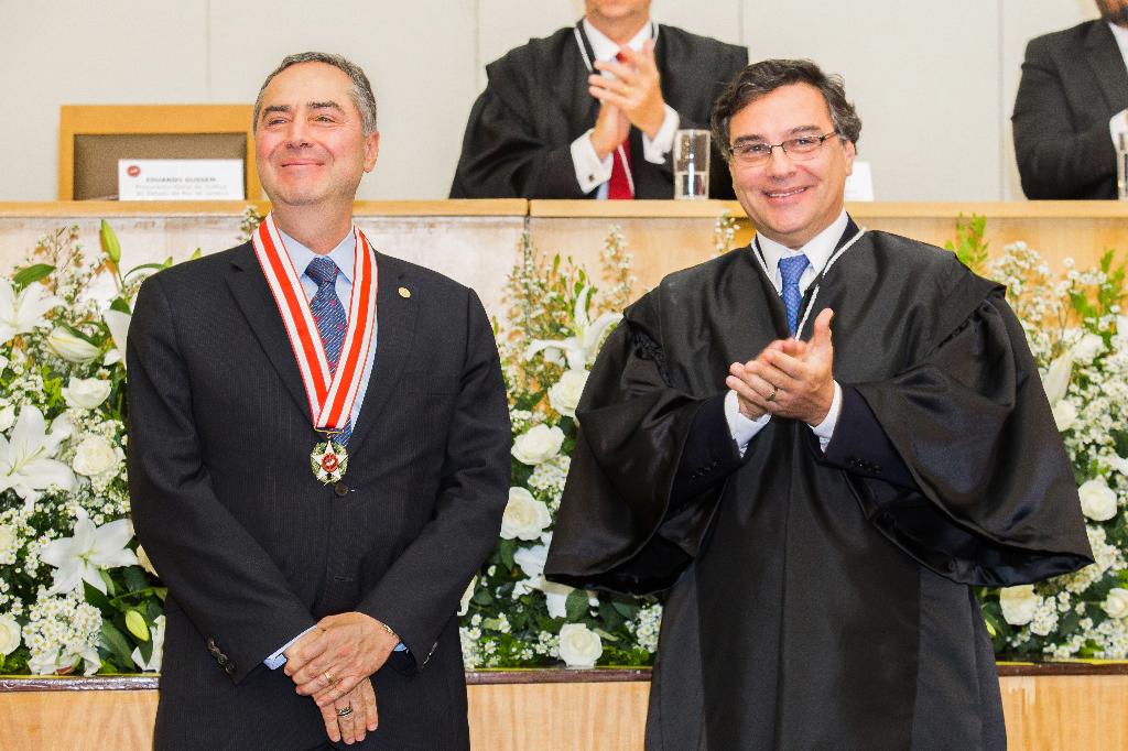 As palavras do ministro do Supremo Tribunal Federal Luís Roberto Barroso à plateia também tiveram a corrupção como tema central. Barroso afirmou que o País enfrenta uma crise sistêmica e endêmica em que a corrupção se alastrou por diversos segmentos e estruturas, tanto públicas como privadas. No entanto, demonstrou esperança e otimismo para que o Brasil amadureça enquanto sociedade. O ministro discursou em nome dos agraciados e também destacou a presença do Ministério Público fluminense na formação de sua personalidade, moldada pela inspiração de seu pai, o procurador de Justiça aposentado Roberto Bernardo Barroso.
