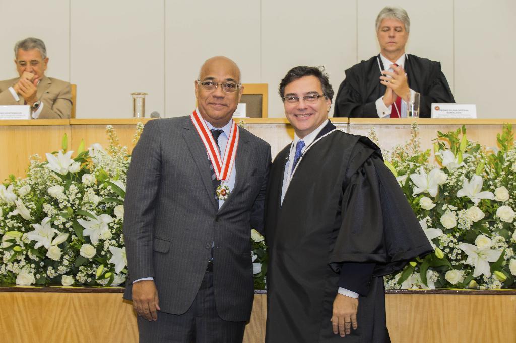 O Ministério Público do Estado do Rio de Janeiro (MPRJ) prestou homenagem nesta sexta-feira (15/12) a autoridades, membros da instituição e servidores com a entrega do Colar do Mérito e a Medalha Annibal Frederico de Souza. A cerimônia foi realizada em sessão solene do Órgão Especial do Colégio de Procuradores de Justiça, no auditório do edifício-sede, em comemoração ao “Dia Nacional do Ministério Público”, celebrado anualmente no dia 14 de dezembro. O Colar do Mérito é a maior honraria concedida pela instituição.