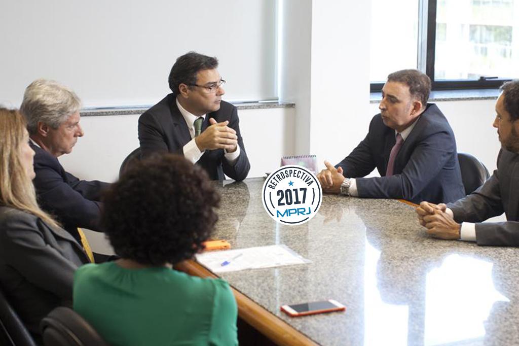 A proposta de adoção de um período único e fixo para inicio e término de todas as designações de promotores para o exercício da função eleitoral foi apresentada, na quarta-feira (15/02), pelo procurador regional Eleitoral do Rio de Janeiro, Sidney Madruga, e o procurador regional Eleitoral substituto, Mauricio Ribeiro, ao procurador-geral de Justiça do Rio de Janeiro, Eduardo Gussem, e ao corregedor-geral do Ministério Público do Rio de Janeiro, Pedro Elias Erthal Sanglard. As coordenadoras do Centro de Apoio Eleitoral (CAO) Gabriela Serra e Miriam Lahtermaher também participaram da reunião. O objetivo da medida é aprimorar a organização e a otimização do exercício das atividades.