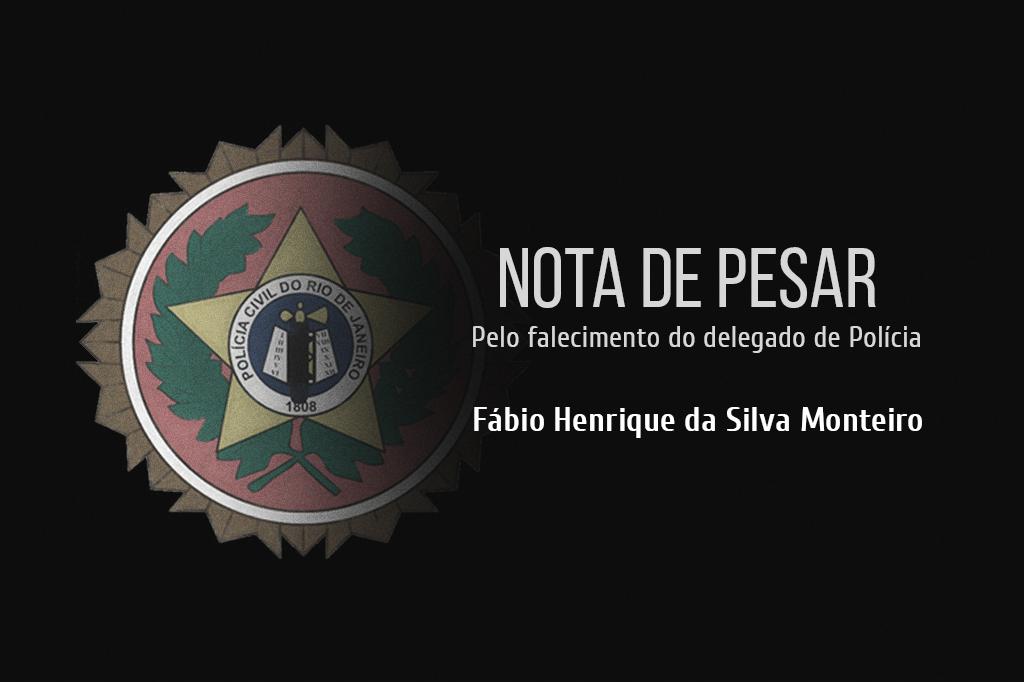 O Ministério Público do Estado do Rio de Janeiro (MPRJ) lamenta a morte do delegado de Polícia Fábio Henrique da Silva Monteiro, ocorrida no dia 12 de janeiro, em decorrência de ato violento, na Zona Norte do Rio.