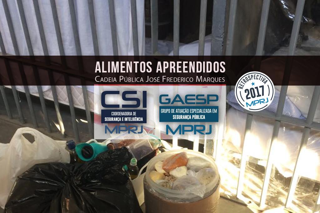 Depois de passarem pela descrição do ICCE, os produtos serão encaminhados à CSI/MPRJ para serem destinados a doação. Durante a vistoria foram encontradas nas celas, divididas em porções iguais, comidas quentes como risoto, bacalhau e frango desfiado com temperos. Para o MPRJ, ficou evidenciado que esses produtos foram fornecidos por restaurantes. Também foram vistos ingredientes sofisticados, alimentos importados, iogurtes, especiarias, queijos, castanhas, frios diversos, cafeteira, eletrônicos e outras mercadorias não permitidas pela Secretaria de Estado de Administração Penitenciária (SEAP). Ainda foi apreendido dinheiro em quantias superiores à permitida.