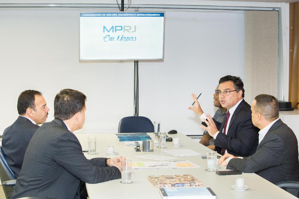 No final da visita, o procurador-geral de Justiça apresentou ao novo secretário de Segurança a estrutura física e as funcionalidades da plataforma digital “MP em Mapas”, criada pelo MPRJ em 2015, que reúne informações sociais, institucionais e administrativas ligadas às áreas de atuação do Ministério Público fluminense. Além de auxiliar a atuação de promotores e procuradores de Justiça, o banco de dados pode ser utilizado quando da formulação de políticas públicas, inclusive, na área de segurança. Também participou desta apresentação o promotor Pedro Borges Mourão, assistente da Subprocuradoria-Geral de Justiça de Administração do MPRJ. Na ocasião, Eduardo Gussem colocou à disposição do general Richard Fernandez Nunes as informações técnicas que compõem o “MP em Mapas”.