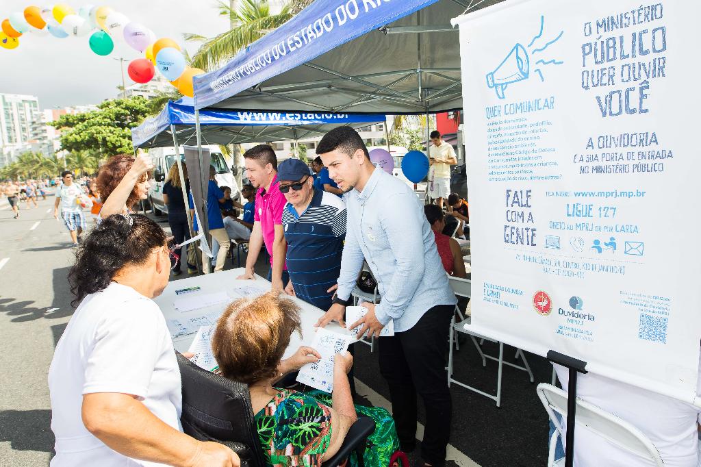 O Ministério Público do Estado do Rio de Janeiro (MPRJ), por meio da Ouvidoria Itinerante, participou da ação CaminhaDown 2018, realizada na manhã deste domingo (18/03), no Posto 8, em Ipanema. Aberto ao público, o evento reuniu centenas de pais e seus filhos para mais de uma dezena de atividades, tais como pintura facial e coletiva para crianças, personagens vivos, viatura e cavalos da polícia montada, contação de histórias, roda de samba, atendimento jurídico, apresentação da banda da Polícia Militar e de dança do ventre. A ação faz parte das celebrações do Dia Internacional da Síndrome de Down – próxima quarta-feira, 21 de março.
