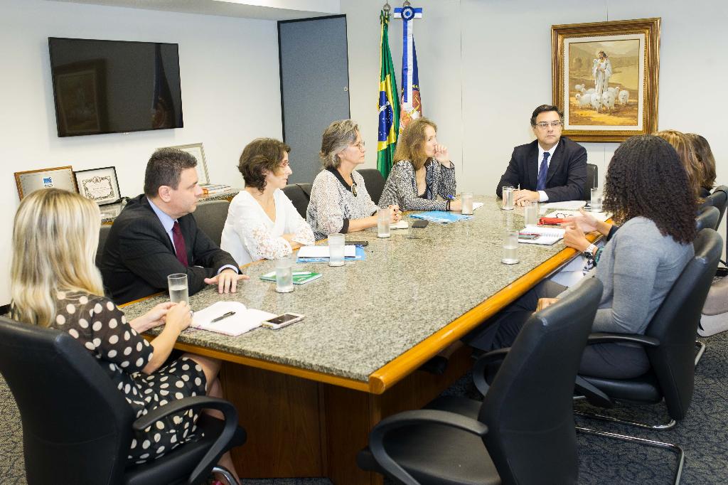 O Ministério Público do Estado do Rio de Janeiro (MPRJ) recebeu, na tarde desta sexta-feira (23/03), membros do Fundo das Nações Unidas para a Infância (Unicef) para tratar de ações colaborativas que devem ser contempladas no processo de criação de um Comitê para Prevenção de Homicídios de Crianças e Adolescentes no Brasil. Na ocasião, a representante do Unicef no Brasil, Florence Bauer; a coordenadora do Escritório do Unicef no Rio de Janeiro e coordenadora nacional da Plataforma dos Centros Urbanos, Luciana Phebo; e a oficial de Comunicação do Unicef Rio, Immaculada Prieto, foram recebidas pelo procurador-geral de Justiça, Eduardo Gussem.