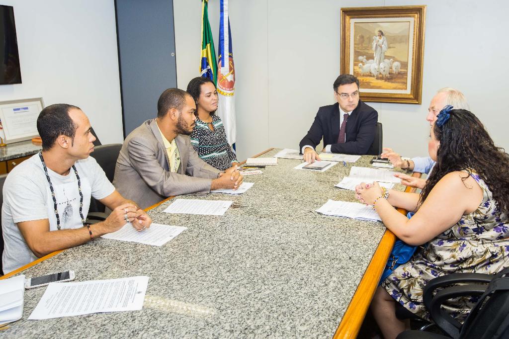 Em seguida, o PGJ e a promotora de Justiça Roberta Rosa, assistente da Assessoria de Direitos Humanos e Minorias (ADH/MPRJ), receberam representantes de religiões de matriz africana para tratar de intolerância. João Paulo Alves, o João Paulo de Xangô, do movimento “Não Mexam com Nossa Ancestralidade”, alertou que só em Nova Iguaçu foram contabilizados 46 ataques contra casas de Candomblé. Os participantes relataram casos recentes de desrespeito contra os praticantes e apontaram para a necessidade de implantação de uma delegacia especializada nesse tipo de crime. A promotora Roberta Rosa informou que o MPRJ já fez uma recomendação no sentido da instalação da delegacia especializada.
